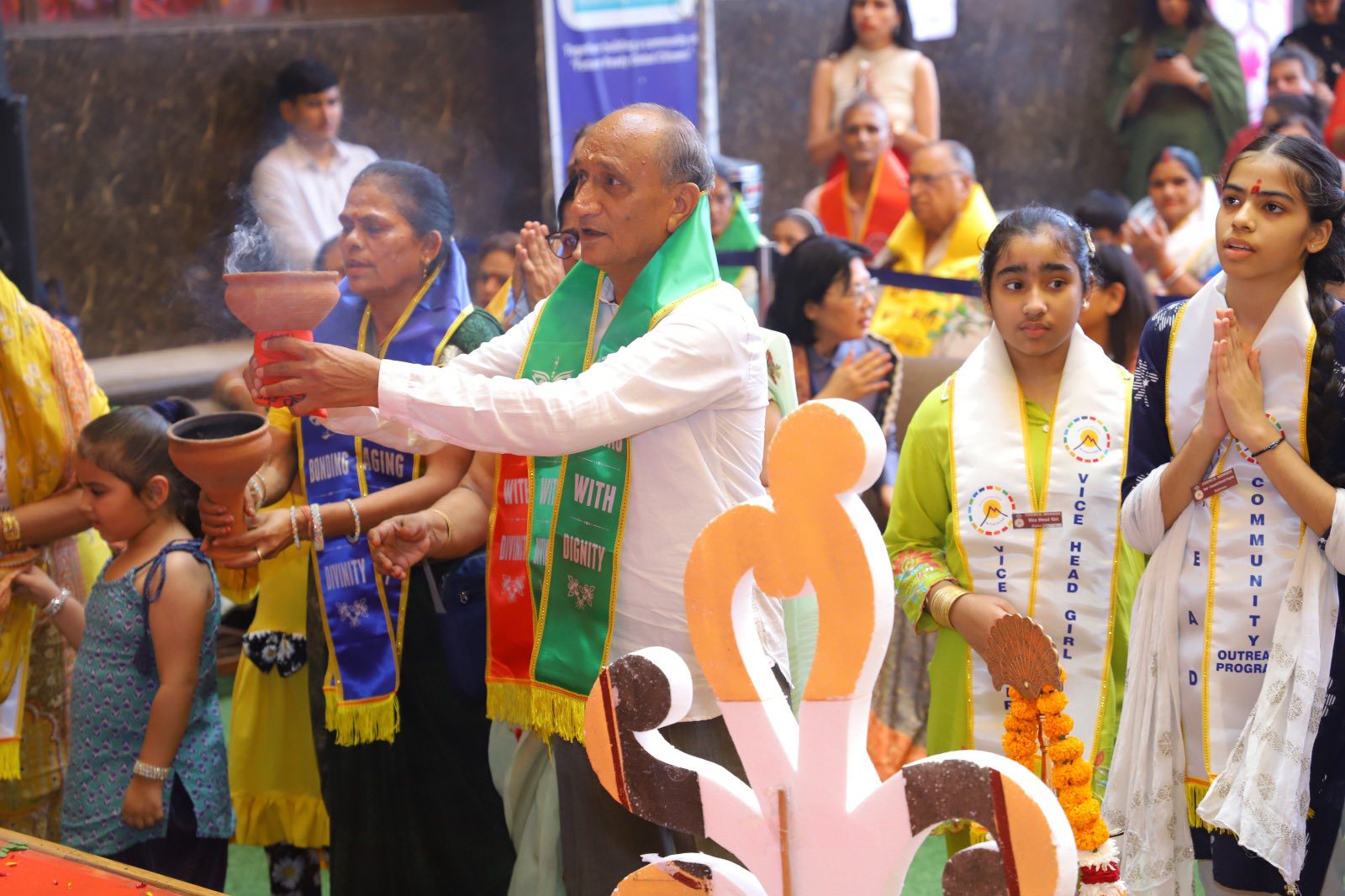 Flavours of Inter Generational Bonding beautifully merged with Inter Cultural Dialogues as Mount Abu School celebrated Maha Saptami with warmth and grace in the esteemed presence of Ms. Jill Lai, Director Education at the Taipei Economic & Cultural Centre, New Delhi. The grandparents of our IB families relived their childhood festive memories while celebrating the theme “Ageing with Dignity… Bonding with Divinity.” Their stories, wisdom, and joy infused the campus with the true spirit of Durga Puja, creating an atmosphere filled with devotion and togetherness.